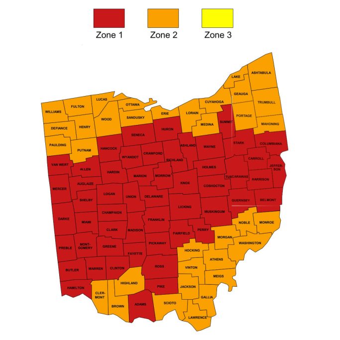 Ohio is one of only a few that has no Zone 3, meaning everywhere in Ohio is the potential for elevated radon levels.